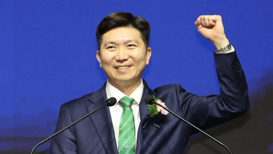유승민 전 국제올림픽위원회(IOC) 위원이 14일 서울 송파구 올림픽공원 올림픽홀에서 열린 제42대 대한체육회장 선거에서 당선된 뒤 주먹을 불끈 쥐며 환하게 웃고 있다. 뉴스1 https://www.donga.com/news/Sports/article/all/20250114/130863425/1