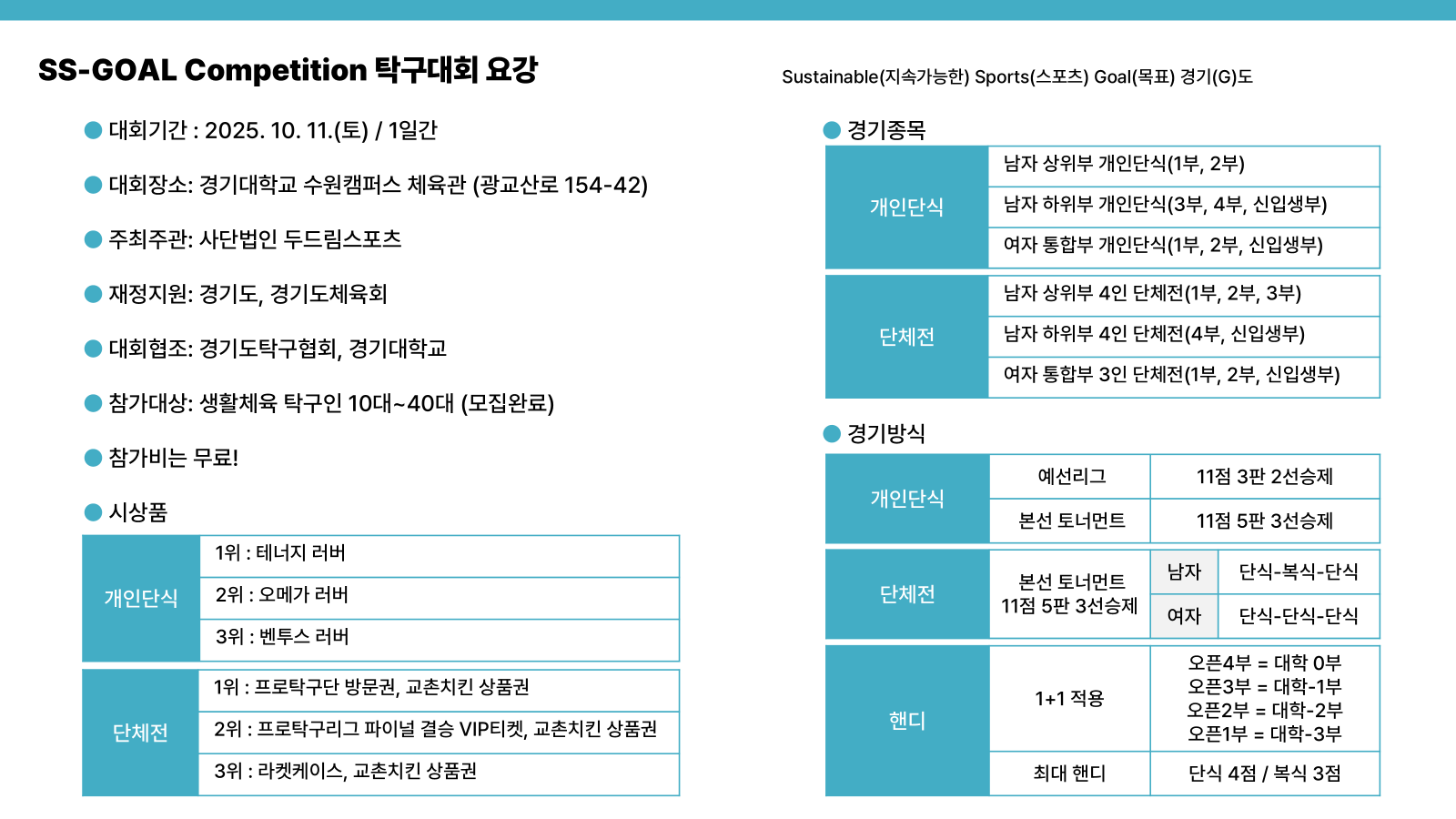 [SS-GOAL Competition] 10/11 탁구대회 요강